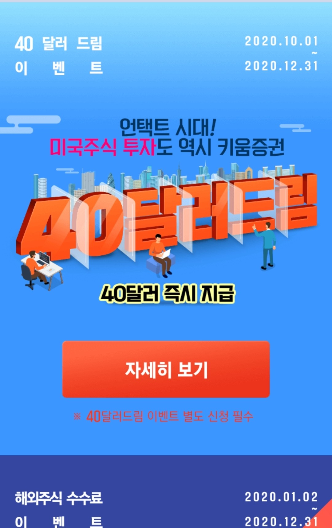 이렇게 해외계좌를 만들었으면 키움증권 40달러 이벤트를 즉각 신청해야한다.