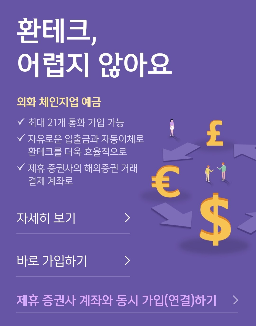 증권계좌와 연결하여 외화를 잠시 예치하는 용도로 좋을듯 하다.