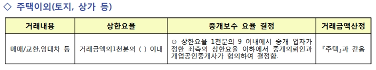 위의 경우를 제외한 경우에는 중개의뢰인 쌍방으로부터 각각 받되 거래금액의 1천분의 9이내에서 중개의뢰인과 개업 공인주개사가 서로 협의하여 결정한다.