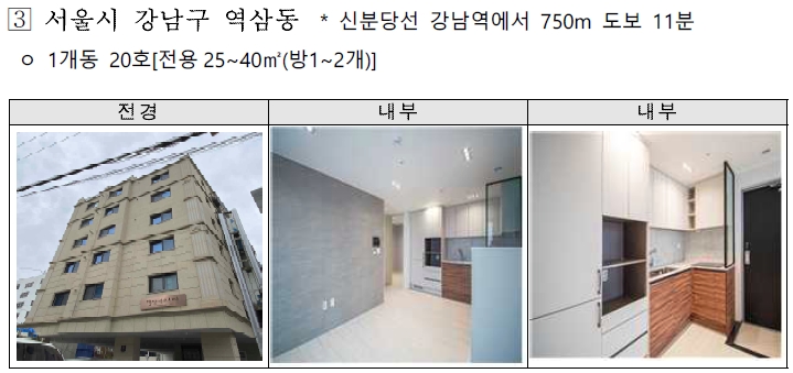 - 일반 전세수요 흡수가 가능한 수준의 고품질 확보한 연립, 오피스텔 형태