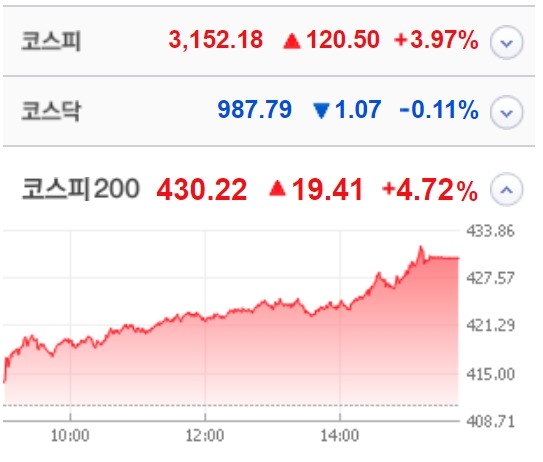 코스피가 3천15선을 돌파한 현재 모습니다.