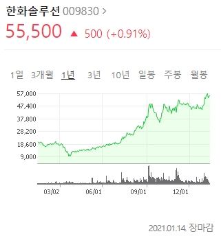 코스피에서 한화에너지 관련주식으로 한화솔루션이 주목받고 있다.