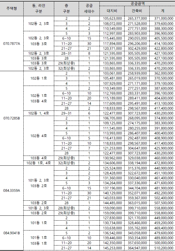 2020년 12월 분양당시 70평에 14억 5천300만원의 분양가였다. 평균경쟁률은 2.76대 1이었다.
