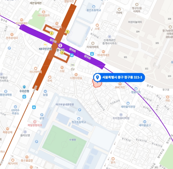 지하철 1호선, 5호선, 6호선이 지나는 청구역 초역세권으로 한정거장을 지나면 2호선부터 6호선까지 5개의 지하철을 이용할수 있는 교통 편의가 최상이다.