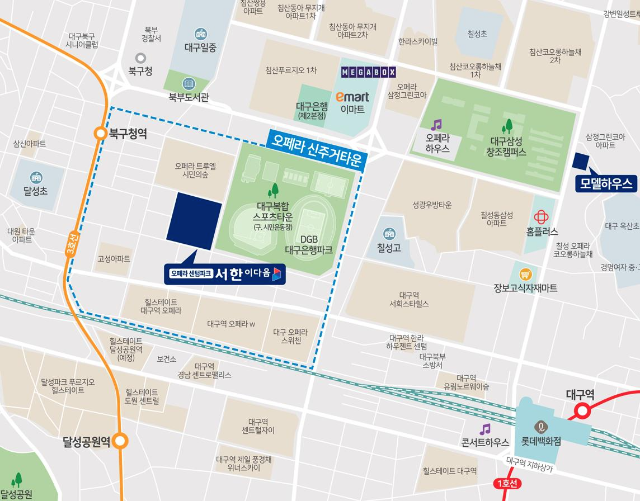 대구시 북구 고성동3가 6-20번지 일원에 지하2층에서 지상최고 26층 4개동의 오페라 센텀파크 서한이다음 아파트 분양에 들어간다.