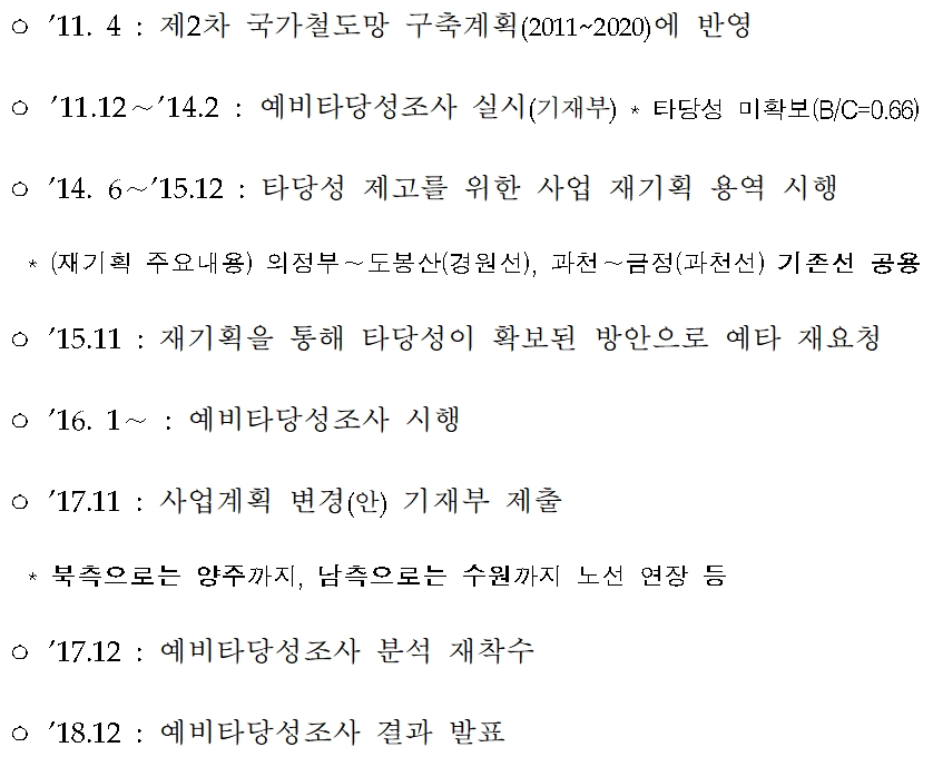 2018년 12월 예비타당성조사를 통과하여 사업추진이 확정되었습니다.
