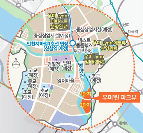 반면 인천광역시 서구 원당대로 941번지 원당동에는 인천 검단신도시 우미린 파크뷰 2단지가 들어선다.