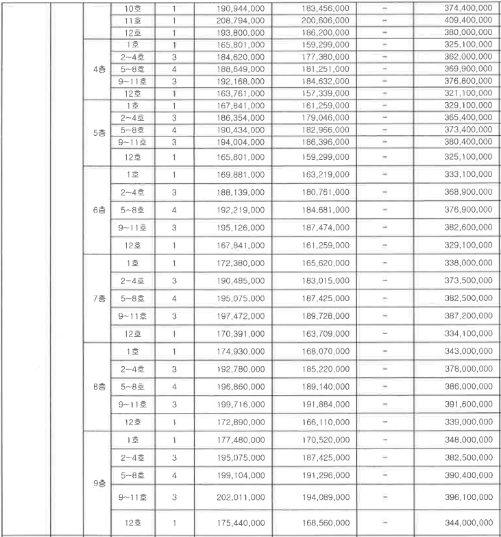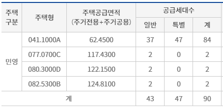 41제곱미터형은 3층부터 9층까지 구성되어있다.