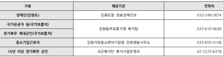 - 대상자 : 「주택공급에 관한 규칙」 제46조에 해당하는 자로서 최초 입주자모집공고일 현재 강릉시에 거주하거나 강원도 지역에 거주하면서 만65세 이상의 직계존속(배우자의 직계존속 포함)을 3년 이상 계속하여 부양(같은 세대별 주민등록표상에 등재되어 있는 경우에 한정)하고 있는 무주택 세대주(피부양자의 배우자도 무주택자이어야 하고 피부양자의 배우자가주택을 소유하고 있었던 기간은 무주택기간에서 제외함)
