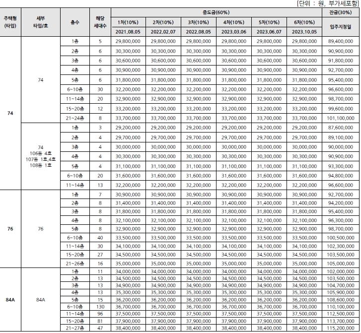 중대형평수 중도금과 잔금이다.
