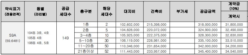 59에서 72형 분양가이다.