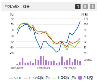 한편 국내 정유주식의 대표주식인 에스오일과 gs칼텍스, sk이노베이션, 흥구석유, 금호석유는 일제히 상승세에 접어들었고 s-oil등 대표 정유주는 52주신고가를 기록하고 있다.
