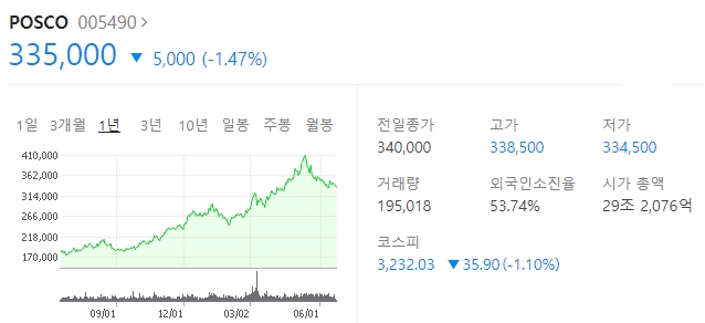 포스코는 지난해 주당 3500원의 중간 배당을 실시했다. 전년(6000원) 대비 절반 가까이 줄면서 배당수익률은 2.54%에서 1.29%까지 내려왔다.