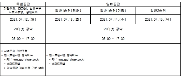 다만, 청약 신청자 중 같은 순위 내에 경쟁이 있을 경우 해당 주택 건설지역인 부산광역시 1년 이상 거주자 (2020.06.30 이전부터 계속 거주)가 우선한다.
