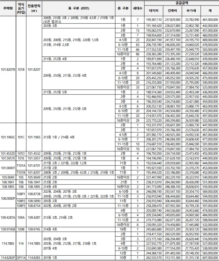 101제곱미터 이상 세종자이더시티 분양가이다.