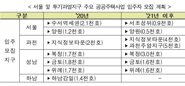 정부의 30만호 공급계획의 일환인 서울권 공공주택사업 입주자 모집계획입니다.