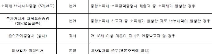 다음은 해당자에 필요한 추가 서류이다.