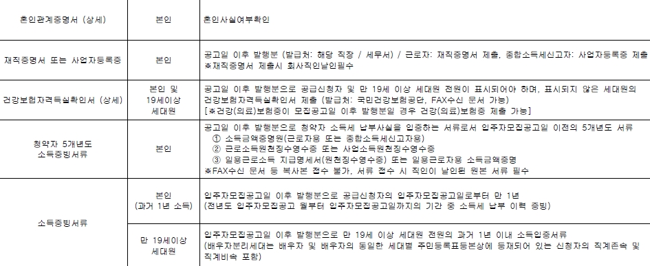※ 가구당 월평균 소득은 무주택세대구성원 중 세대주 및 성년인자(만19세 이상)의 합산 소득이다. 단, 세대원의 실종 · 별거 등으로 소득파악이 불가능한 경우에는 주민등록등본 말소를 확인하고 소득산정의 대상에서 제외함.
