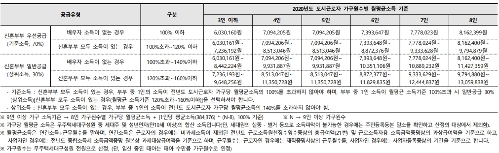 특별공급 청약통장, 세대주요건, 소득기준이다.