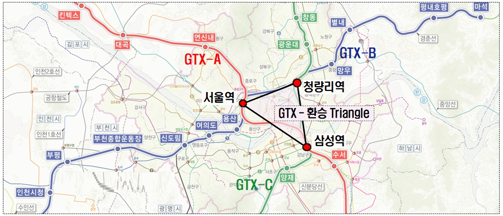 청량리역, 삼성역, 청량리역을 GTX 환승 트라이앵글로 조성하여