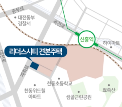 대전시 동구 천동 리더스시티는 대전 도시철도 1호선 역세권 단지이다.