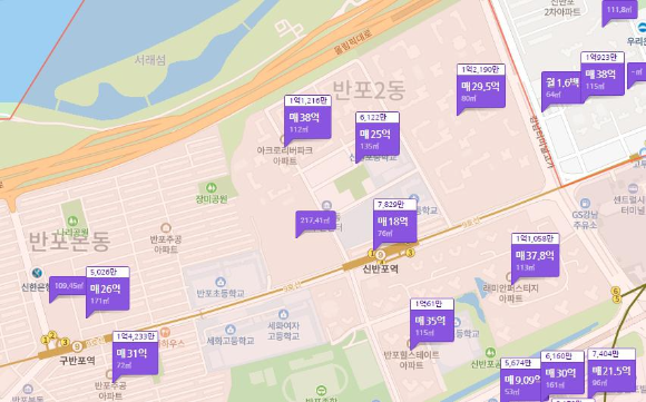 아크로리버파크는 현재 84제곱미터 매매가가 39억 ~ 40억원대의 매물 14세대가 나와있다.