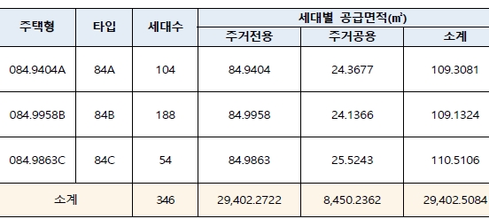 면적별 공급수는 84㎡A 104가구, 84㎡B 188가구, 84㎡C 54가구, 118㎡A 106가구로 선호도 높은 중형평수와 대형 평수로 공급된다.
