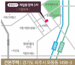 운정신도시 제일풍경채 3차 그랑포레 모델하우스는 경기도 파주시 와동동 1498-3번지에 있다.