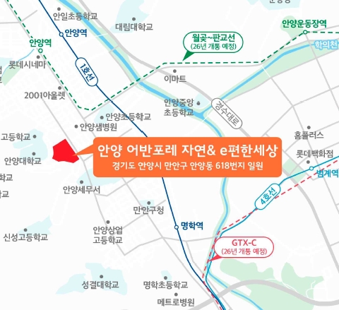 안양 어반포레 자연앤 e편한세상 입지는 안양시 만안구로 정비사업이 활발하게 추진되면서 신흥 주거타운으로의 개발이 한창인 곳으로 다양한 개발 호재가 풍부하다.