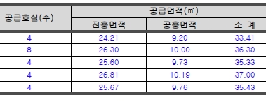 • 단위세대 마감자재 내용은 주택형별에 따라 약간의 차이가 있으니 견본주택 및 모형, 마감재 보드, 인쇄물을 참고 하시기 해야한다. (견본주택 기준으로 한다.