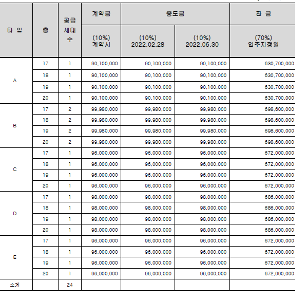 • 외국인 또는 법인은 중도금 대출취급기관의 방침에 따라 중도금 대출이 불가할 수 있다. (중도금 대출 불가시 자납하여야 한다.)