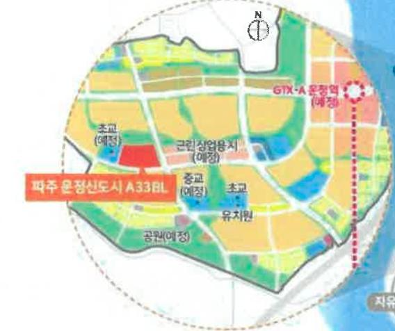 경기도 파주시 운정신도시 A33블럭은 GTX-A노선의 파주 연장선인 운정신도시역과 닿아있는 택지이다.