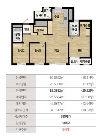 세대별 면적은 전용 59A, 59B, 72A, 72B의 중소평형 면적으로 공급된다.