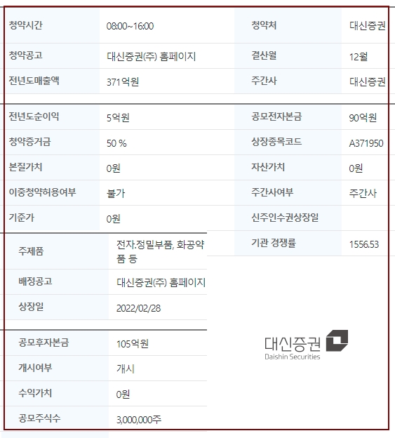2월 28일 상장하게 되며 배정결과는 2월 22일 발표된다.