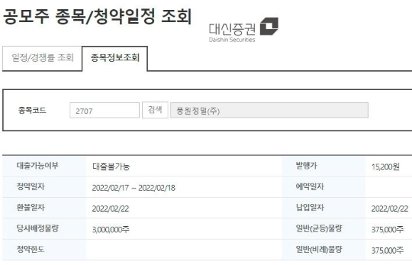 풍원정밀 공모주를 청약할수 있는 증권사는 대신증권이다.