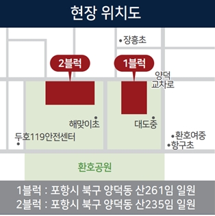경북 포항시 북구 양덕동에 힐스테이트 환호공원 1블럭과 2블럭이 분양된다.