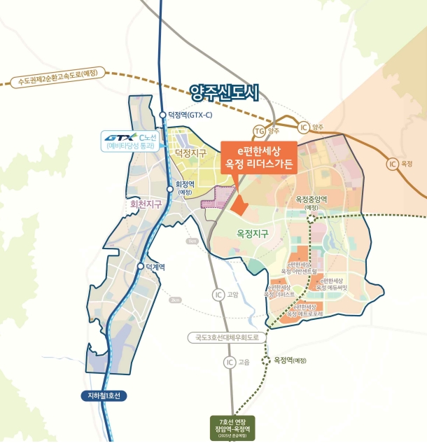 입주를 완료한 옥정신도시의 e편한세상 단지와 합하여 총 6천463세대의 대규모 브랜드 타운을 형성하여 인프라가 속속 갖춰지고 있다.