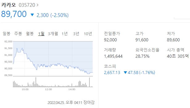 카카오 주가 부진 원인