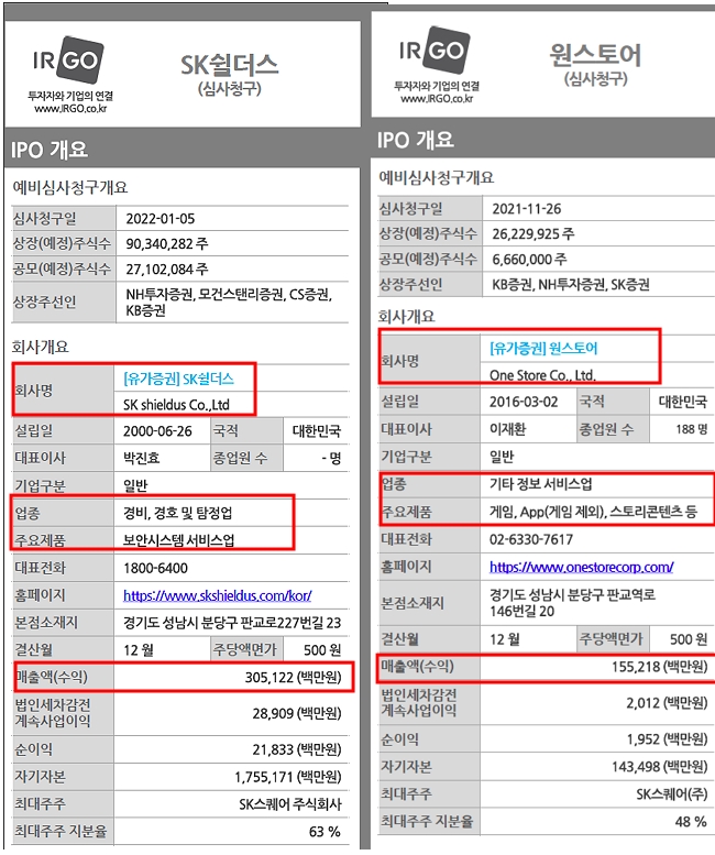 공모규모는 SK쉴더스가 1조516억원이며 원스토어는 2777억원으로 높은 구주매출 비중과 공모가 고평가 논란이 있어 유의할 필요가 있다는 설도 있으며 쏟아진 공모주 물량으로 흥행을 예측하기는 복잡한 변수가 상황으로 판단되고 있다.