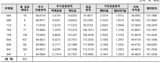 - 공급물량 : 공공분양 총 953세대