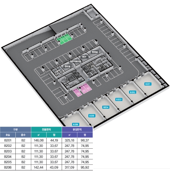 지하 2층부터 지상 4층까지 드라이브인 시스템을 적용했고 각 사업장에서 물류 상차와 하역을 편리하게 할수 있다.