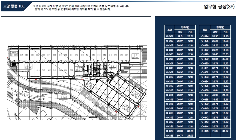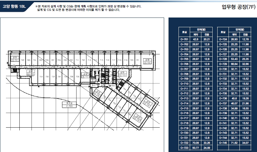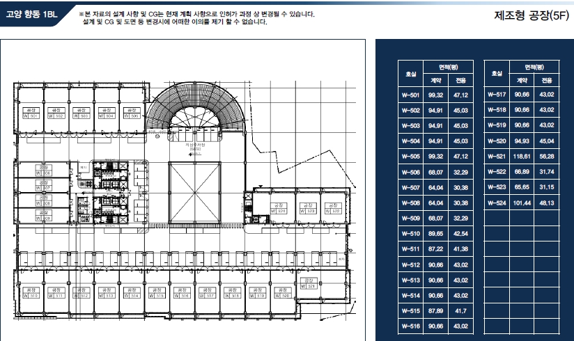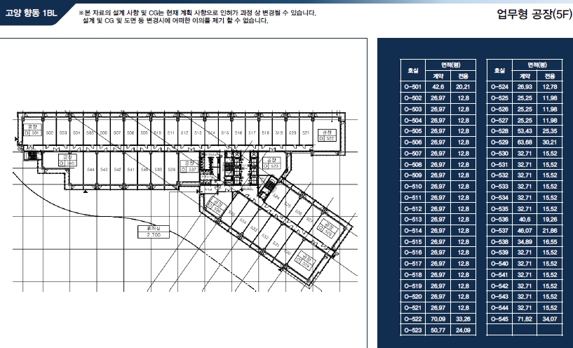 다음은 고양 향동 1블럭 지식산업센터 층별도면이다.