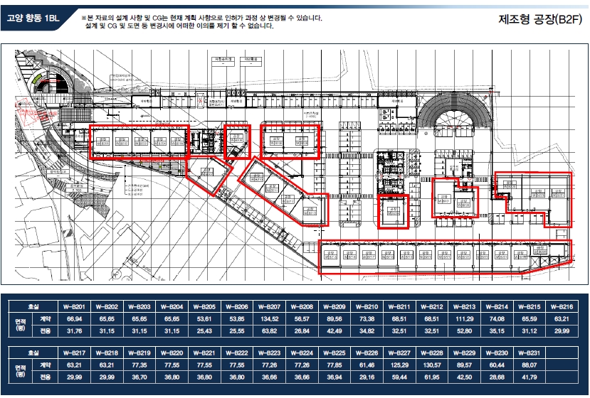 경기도 고양시 향동지구 지원 1블럭 지식산업센터는 지하3층에서 지상7층으로 구성되어있다.