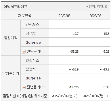 다음은 박셀바이오 펀더멘털 어닝서프라이즈로 영업이익상황과 당기순이익이다.