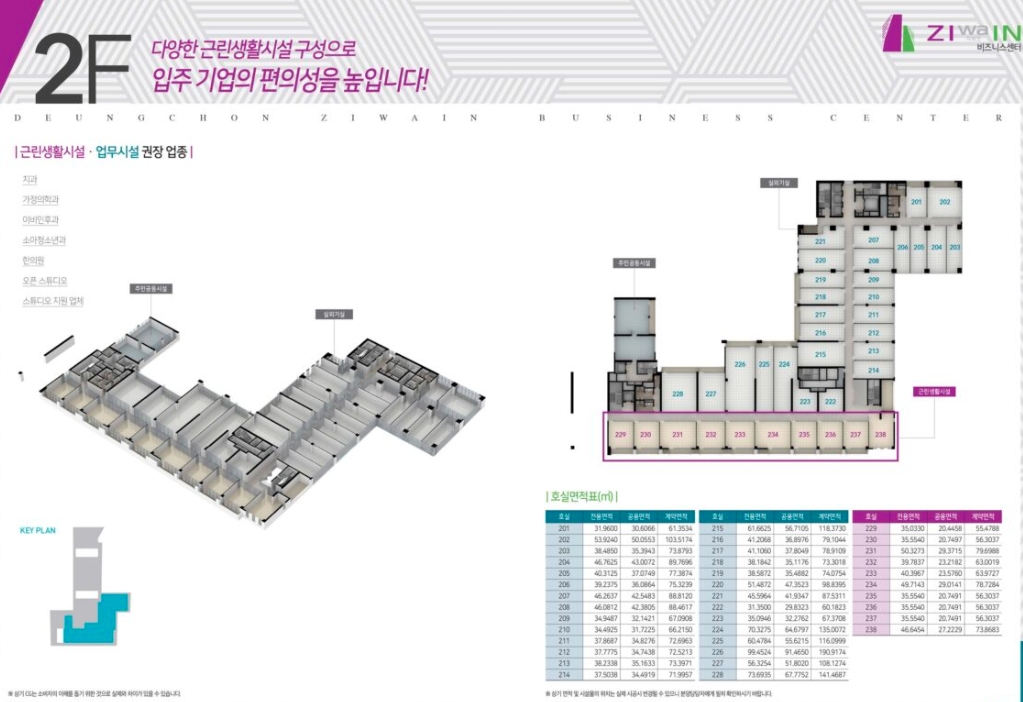 등촌 지와인 비즈니스센터는 지하 2층~지상 18층, 오피스 233실과 상업시설 35실의 지식산업센터이다.