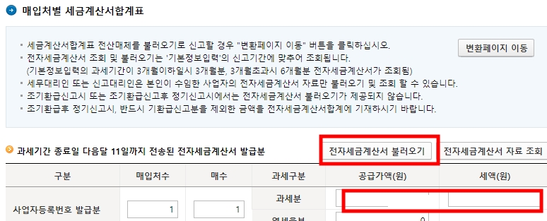 확인후 입력버튼을 누르면 세금계산서수취분 일반매입에 숫자가 입력된것을 확인할 수 있다.