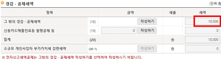 8. 그밖의 경감, 공제세액 항목에서 전자신고 1만원을 확인하여 세액 1만원을 경감받는다.