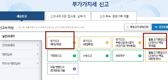 개인사업자는 부가가치세법 제48조에 의거 조기환급(영세율 및 시설투자환급)인 경우에만 예정신고할 수 있다.