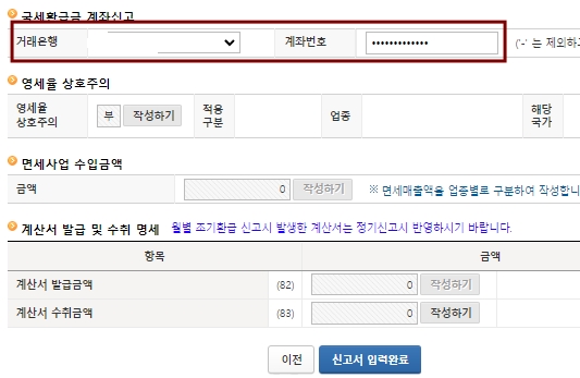 환급금 계좌신고로 환급받을 은행 정보를 입력한다.