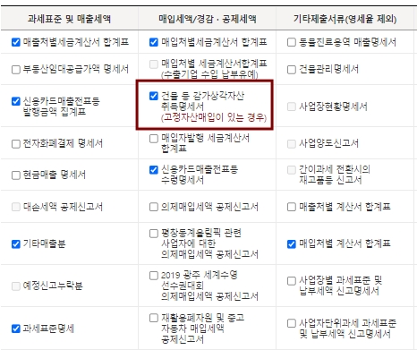 건물등 감가상각자산 취득명세서를 체크한다.